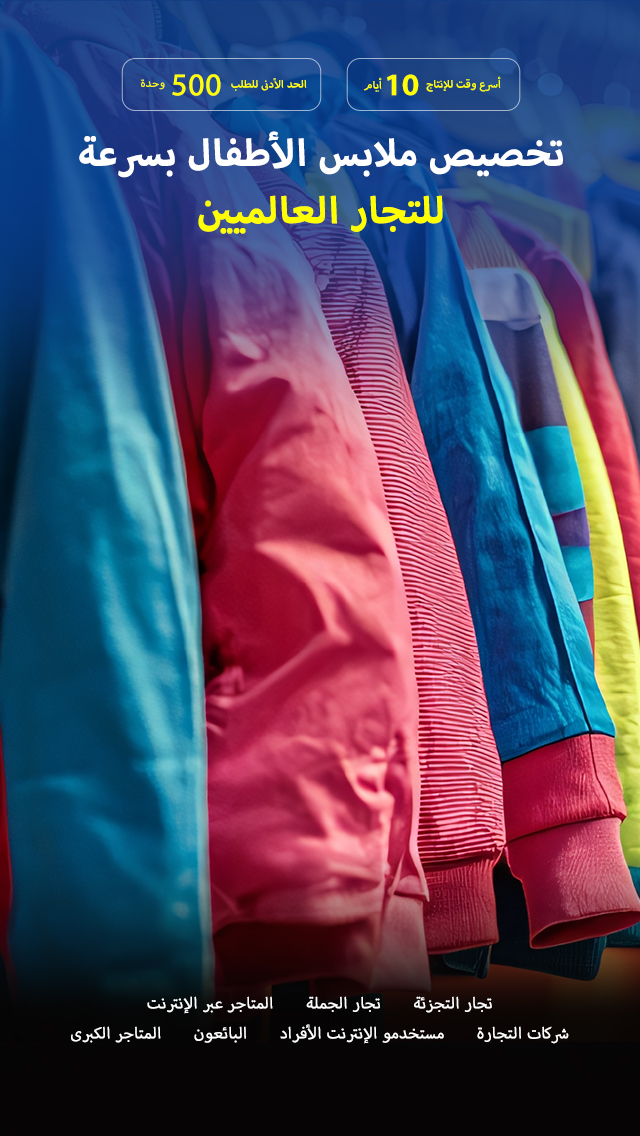 مع قدرة إنتاجية ضخمة، وقدرات تصميم متقدمة، وسلسلة توريد شاملة، ونظام لوجستي فعال، نحن ملتزمون بتقديم ملابس أطفال مخصصة عالية الجودة للتجار في جميع أنحاء العالم بأسعار تنافسية.
